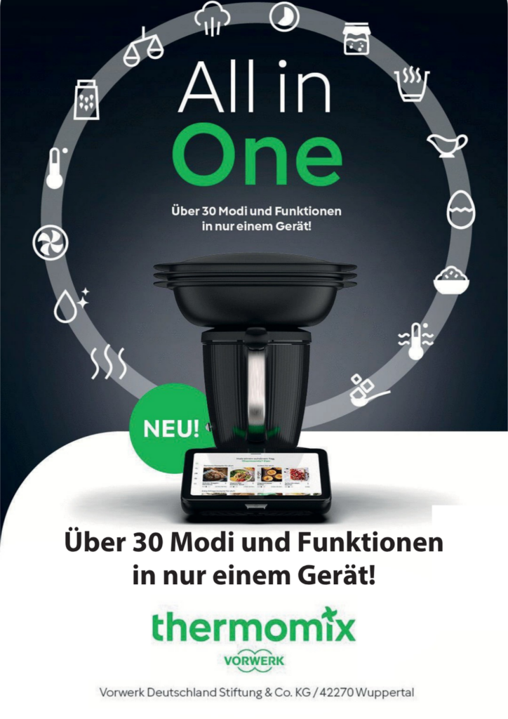 Der Thermomix steht für Kochkomfort der Extraklasse: Mixen, Dampfgaren, Rühren oder Mahlen – alles in einem Gerät. Bei uns probiert man ihn selbst aus, erlebt die Funktionen in Echtzeit und bekommt persönliche Tipps vom Repräsentant und Gruppenleiter  Noah Baalke.